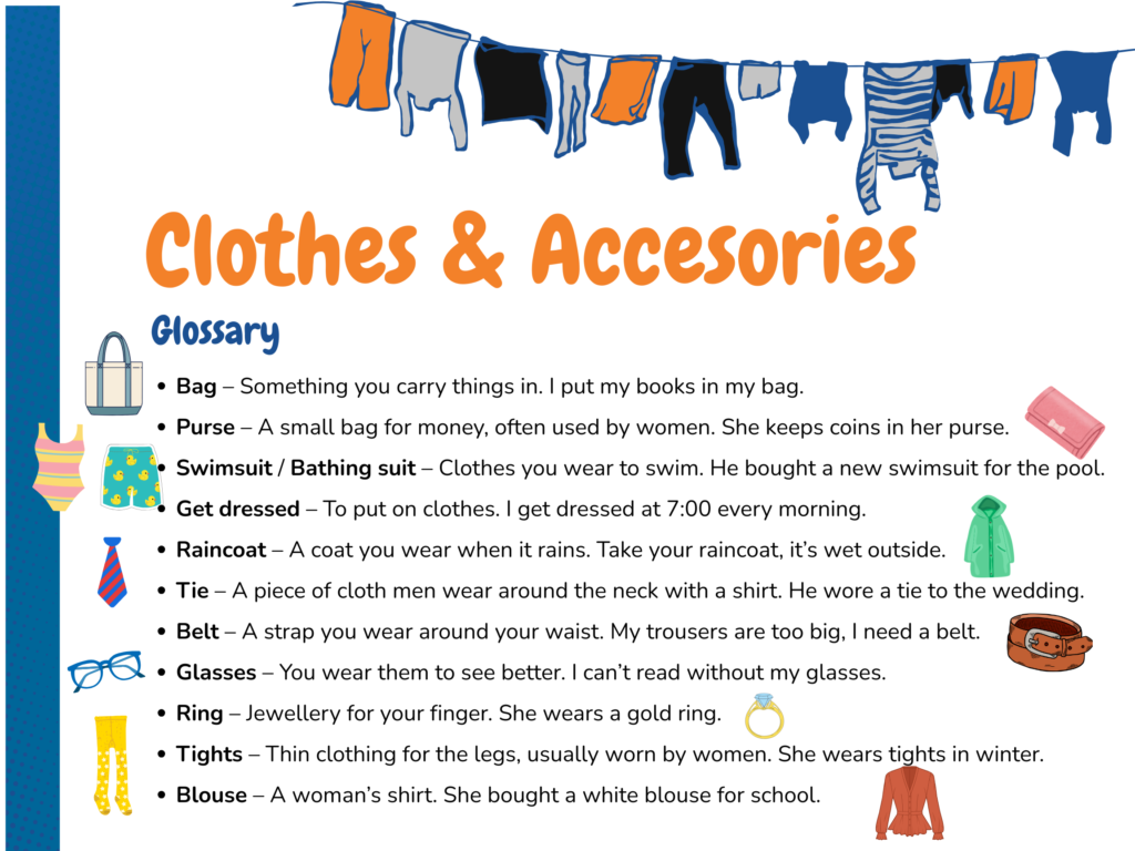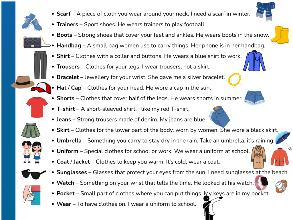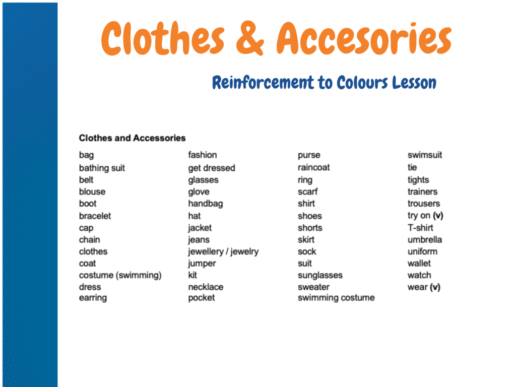 The following list of words represents the expected lexical range your students should know at this stage. For further details and examples, you can consult the English Vocabulary Profile (EVP)