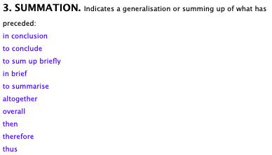 Using the right connective → shows you know how to clarify, develop, or summarise ideas.