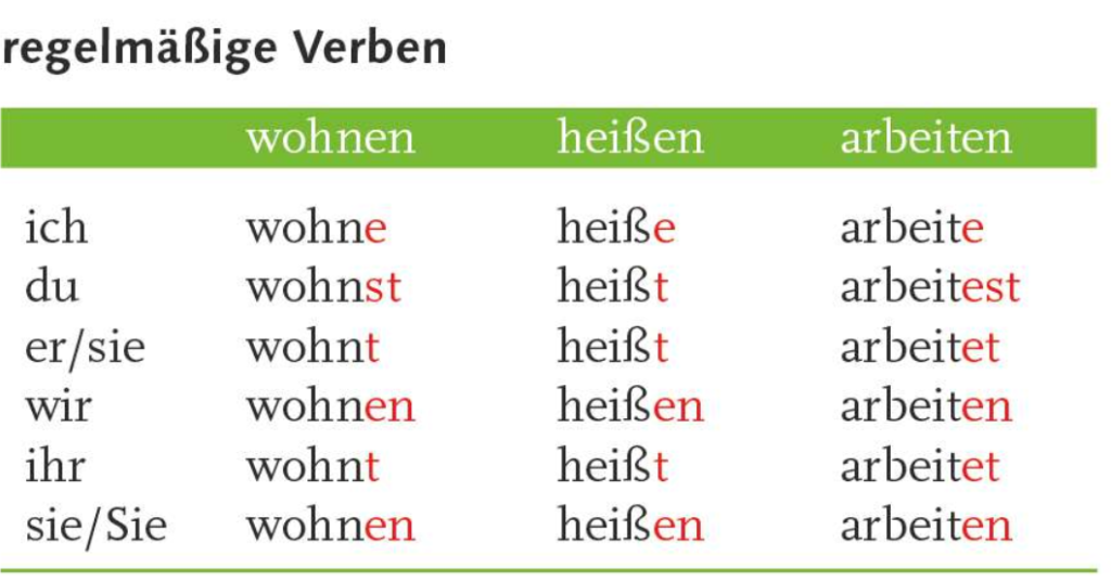 Lee la tabla sobre los verbos regulares, de igual forma conjuga los verbos „spielen“ y „kaufen“ en tu libreta